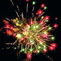 Сфера из золотых форсов, красных, зелёных и синих огней