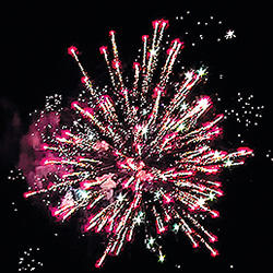 Мощная комбинированная батарея салютов с увеличенным калибром зарядов для масштабного шоу. Профессиональные эффекты включают сложные сферические разрывы с премиальными цветовыми комбинациями и разнообразными текстурами.