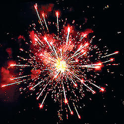 Сфера из красных огней и разлетающихся трещащих коротких форсов