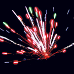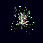 Крупный калибр. Разнообразные эффекты: красные хризантемы, зеленые пионы, золотые тюльпаны на фоне серебряных мерцающих звезд.
