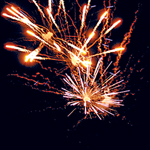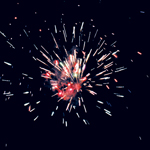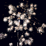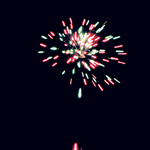 Разрывается разноцветными сферами, серебряной трещащей сферой, пурпурной сферой с зеленым центром, золотыми хвостами с синим центром, трещащим салютом с хвостами в центре.