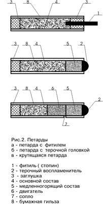 Петарда представляет собой бумажную гильзу с пиротехническим составом рис.2.