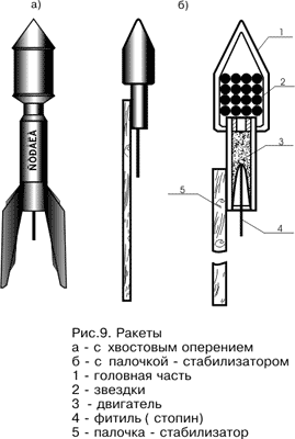 Ракета состоит из двигателя, головной части и стабилизатора рис. 9.