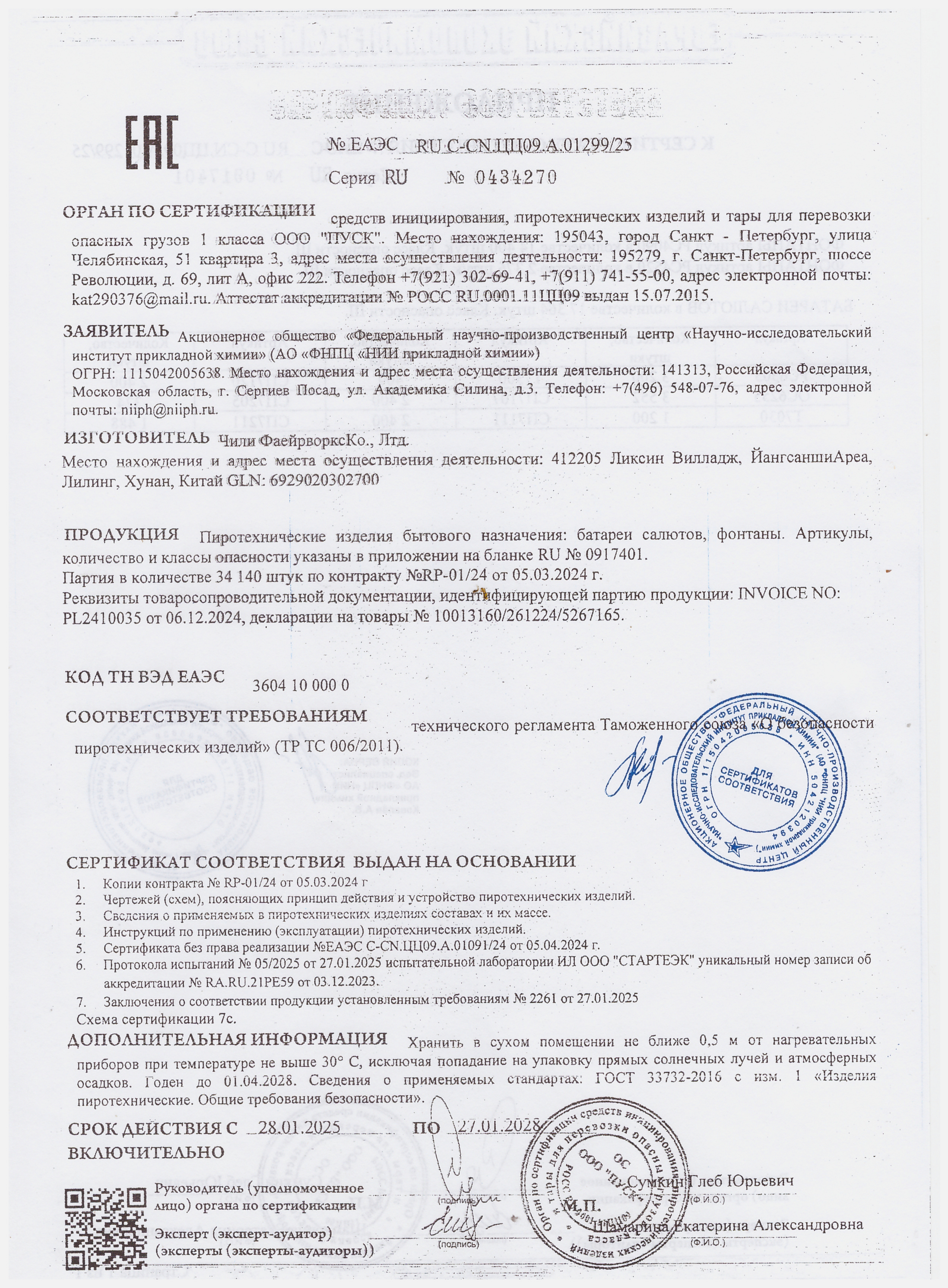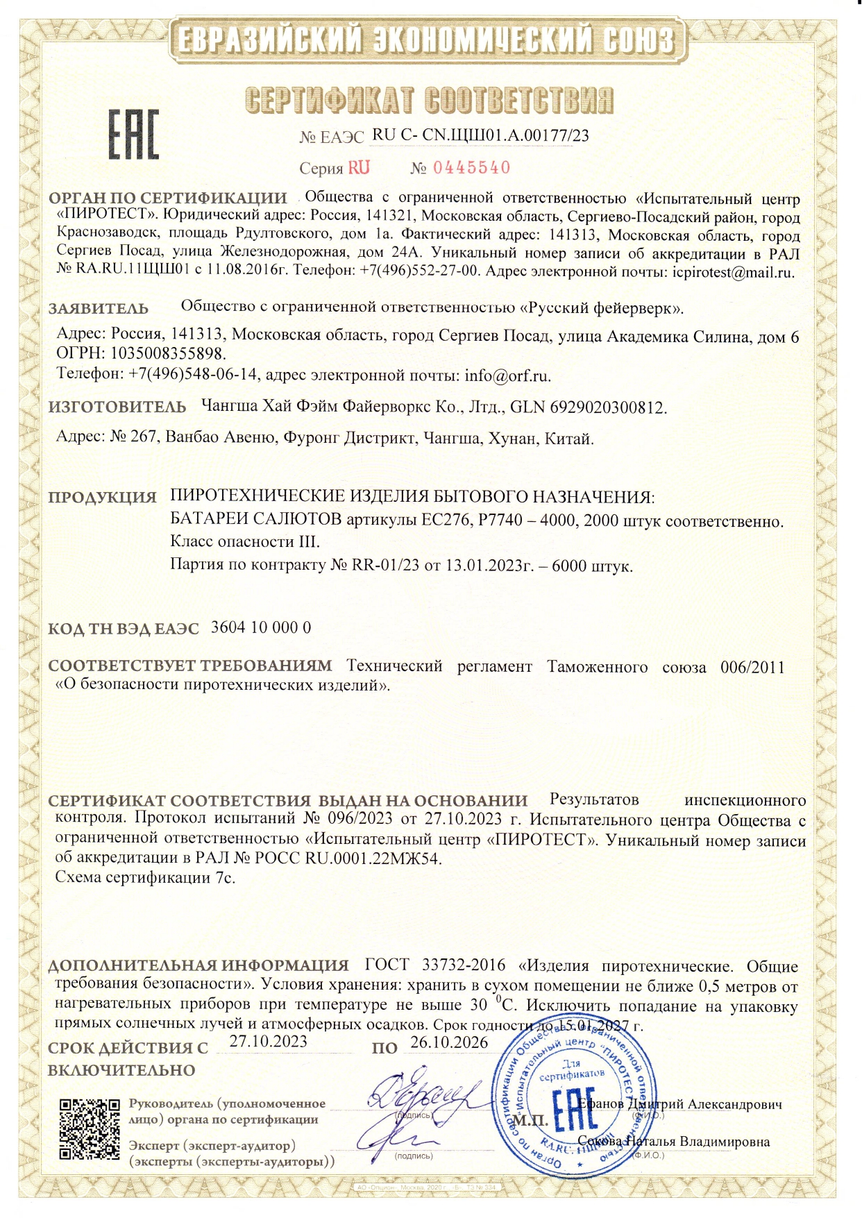 Официальный сайт «Русский фейерверк» реализует пиротехнику, произведенную в соответствии с высочайшими стандартами и прошедшую сертификацию в РФ.