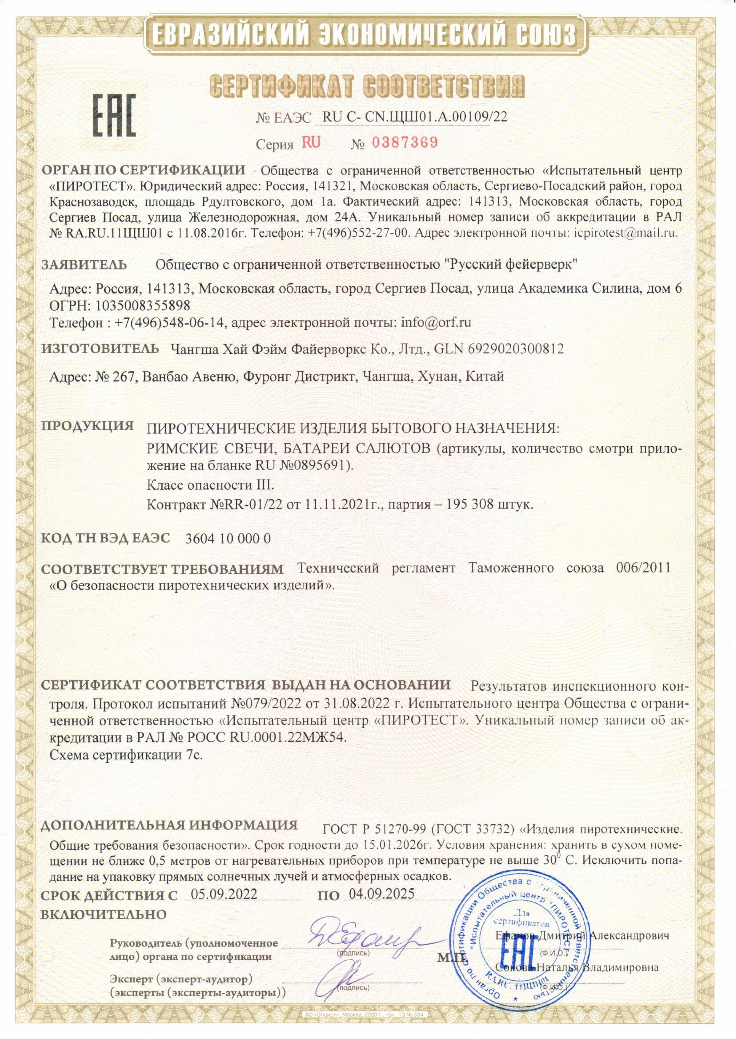 В официальном Интернет-магазине Русский Фейерверк вы гарантированно можете приобрести оригинальную продукцию, изготовленную в соответствии с высочайшими стандартами качества, ввезенную и сертифицированную согласно законодательство Российской Федерации.